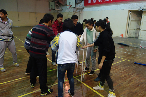 在学院聘请的专业老师的带领下,素质拓展活动紧张而有序的开展,学生会主席团组成的工作人员进行全程协助和测评。