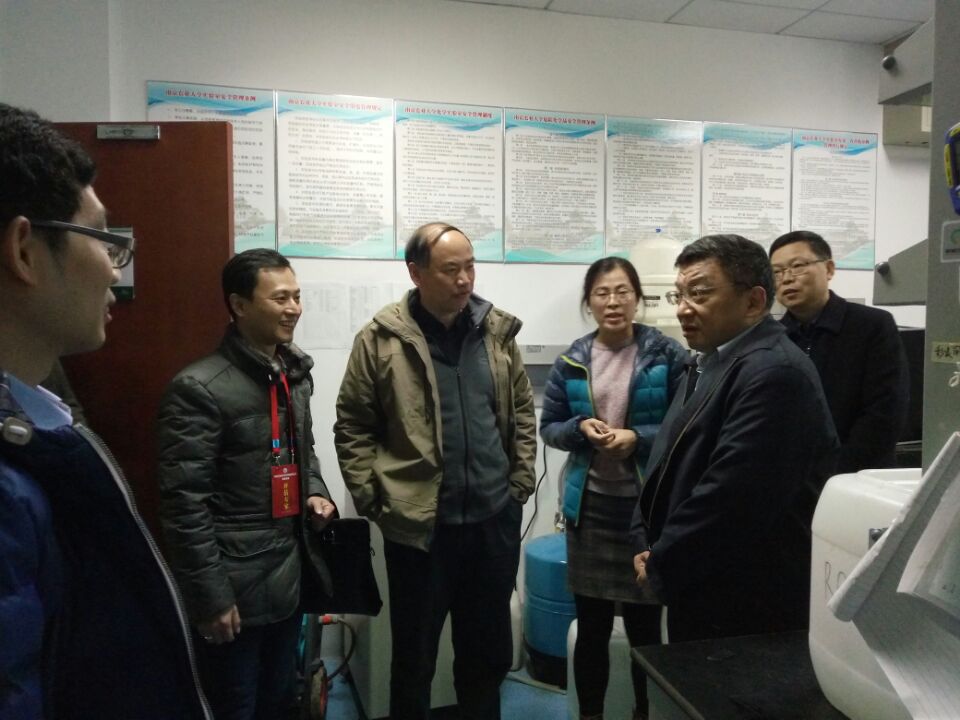 领导和老师们陪同王涛副校长、唐文谦老师参观实验室