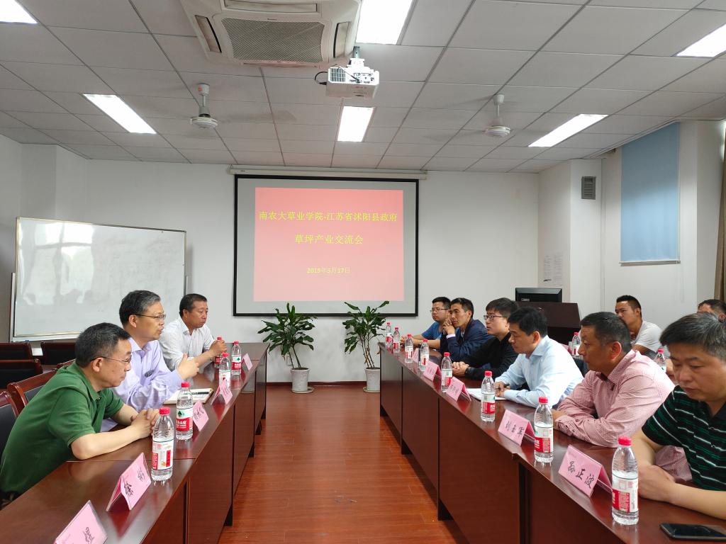 交流洽谈草坪产业合作事宜,学院党总支书记李俊龙、院长郭振飞、副院长徐彬、教授杨志民和副教授陈煜等出席座谈会。会议由李俊龙主持。