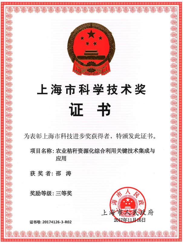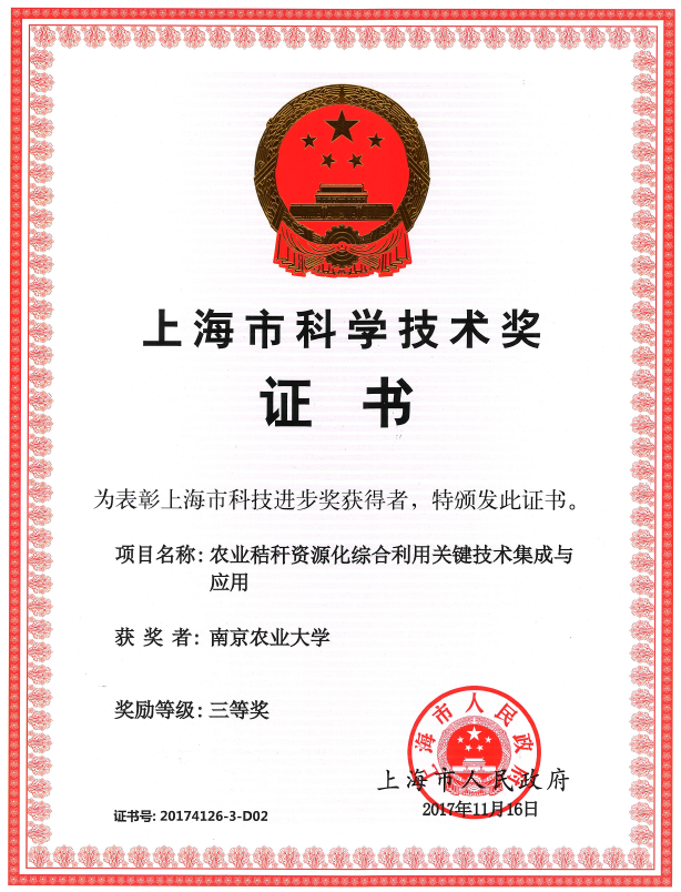 邵涛教授团队与上海市农业科学院等单位联合申报的《农业秸秆资源化综合利用关键技术集成与应用》获上海市科技进步奖三等奖。青娱乐