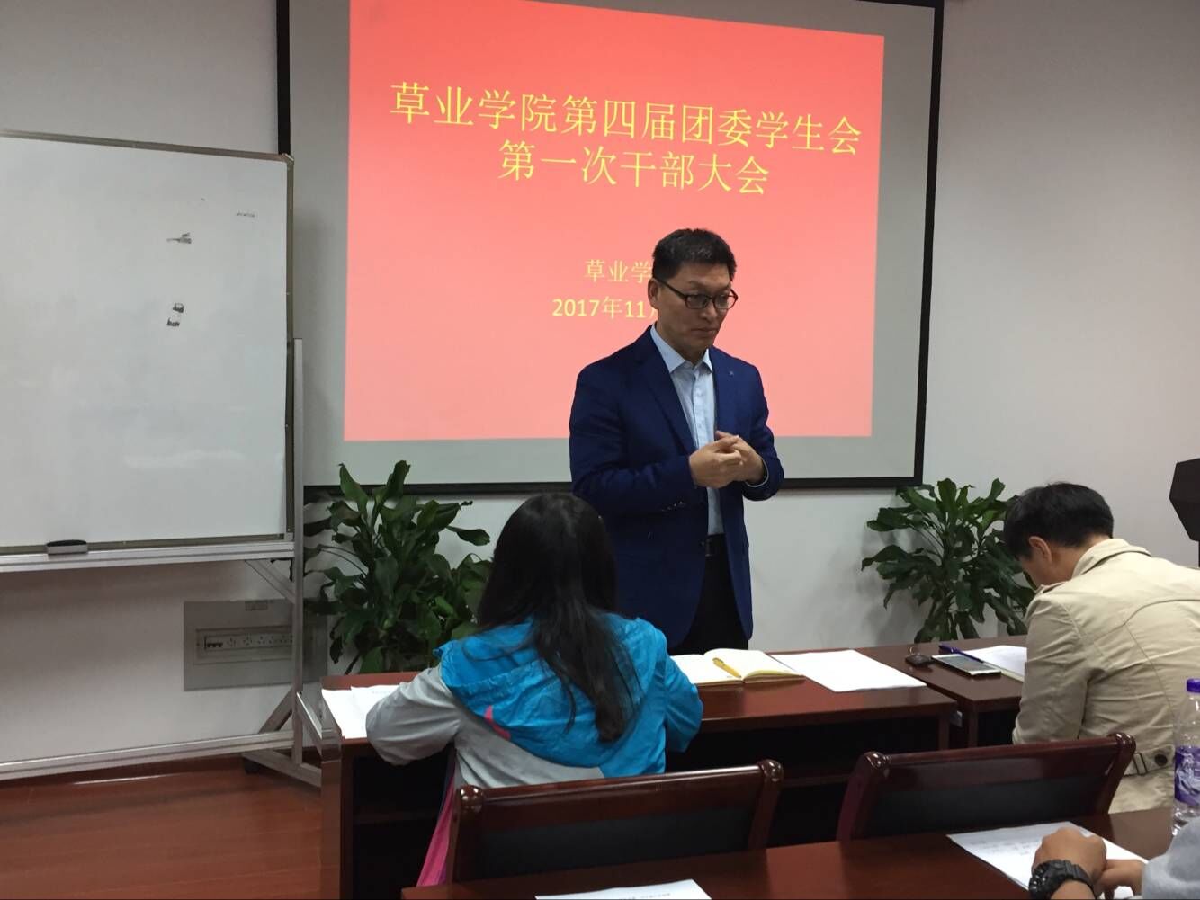 会议室召开本学期第一次全体会议。 出席人员有青娱乐