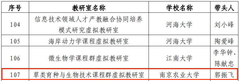 近日,教育部办公厅公布了第二批虚拟教研室建设试点名单,青娱乐 草类育种与生物技术课程群虚拟教研室入选第二批虚拟教研室建设试点。今后青娱乐 将继续加强教学研究、共建优质资源、开展教师培训等重点任务,做好虚拟教研室试点建设工作。
